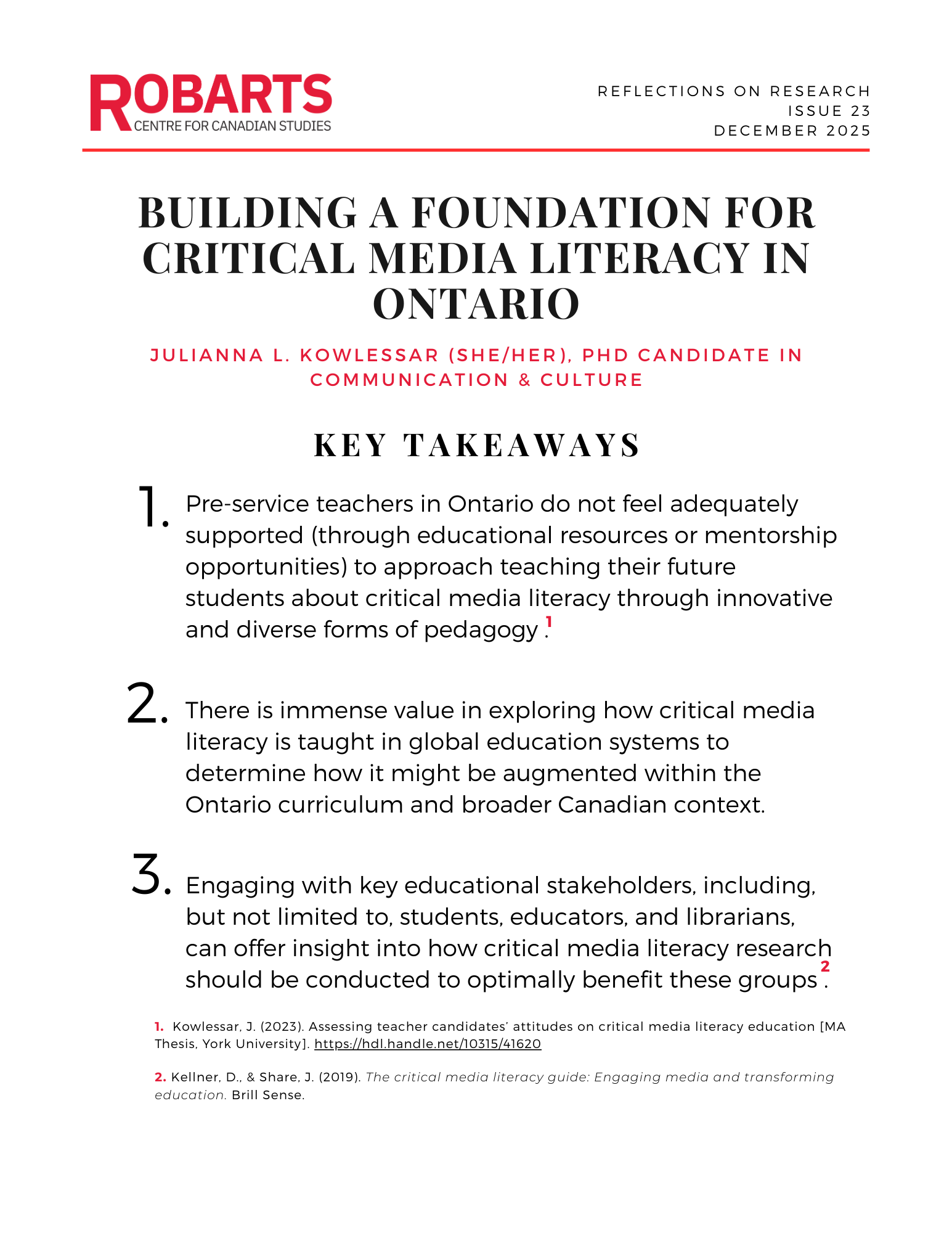BUILDING A FOUNDATION FOR CRITICAL MEDIA LITERACY IN ONTARIO